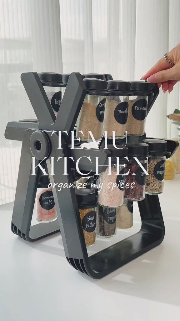 تصميم عملي يجعل شكل عجلة فيريس حامل التوابل مستقرًا وليس من السهل اهتزازه. مادة الحامل والبرطمان الزجاجي ليس من السهل تلطيخها بالزيت والتوابل، كما أنها سهلة التنظيف.
