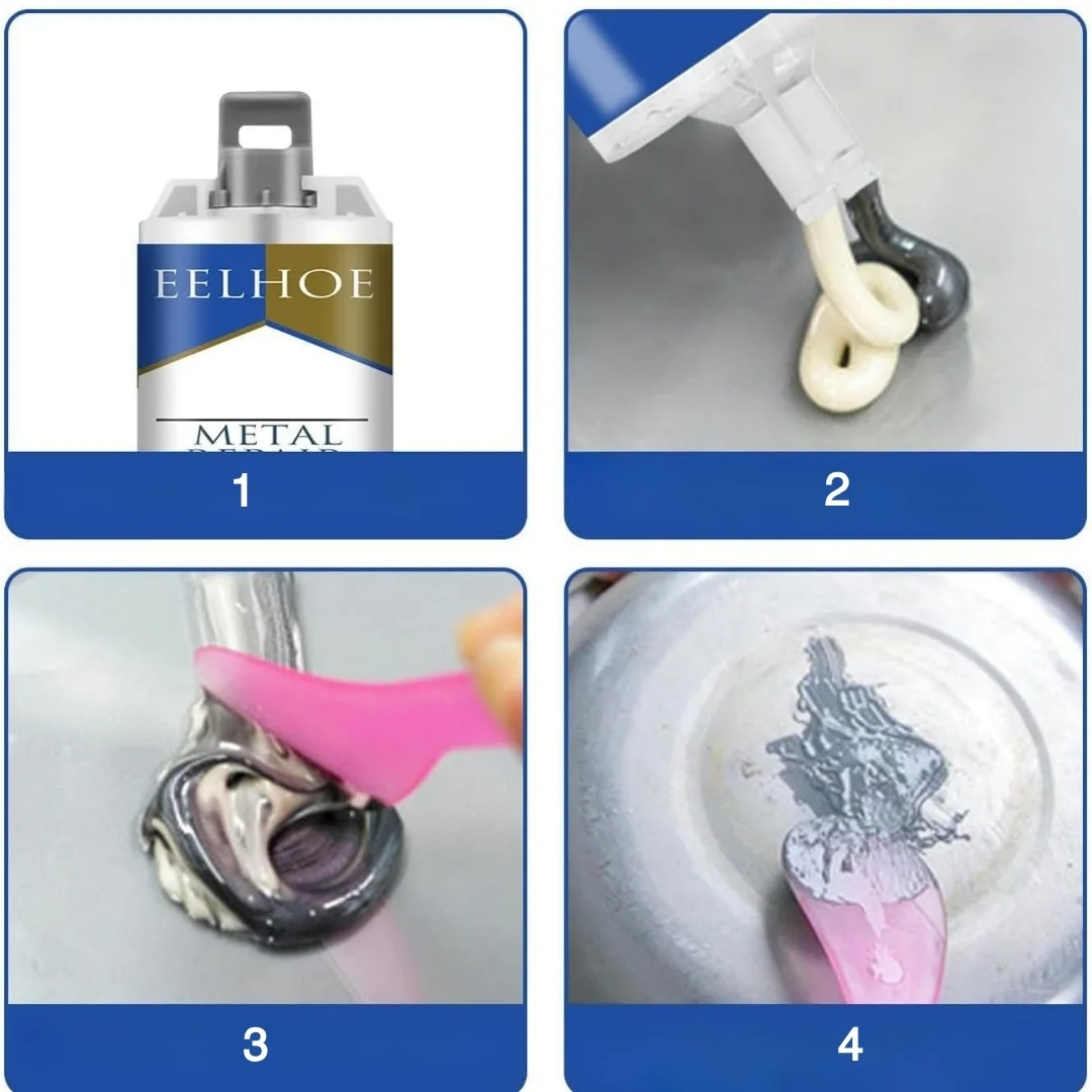 مصمم لتصليح تشققات وعيوب المعادن بمكوّنين A وB يتم دمجهما للحصول على تماسك قوي