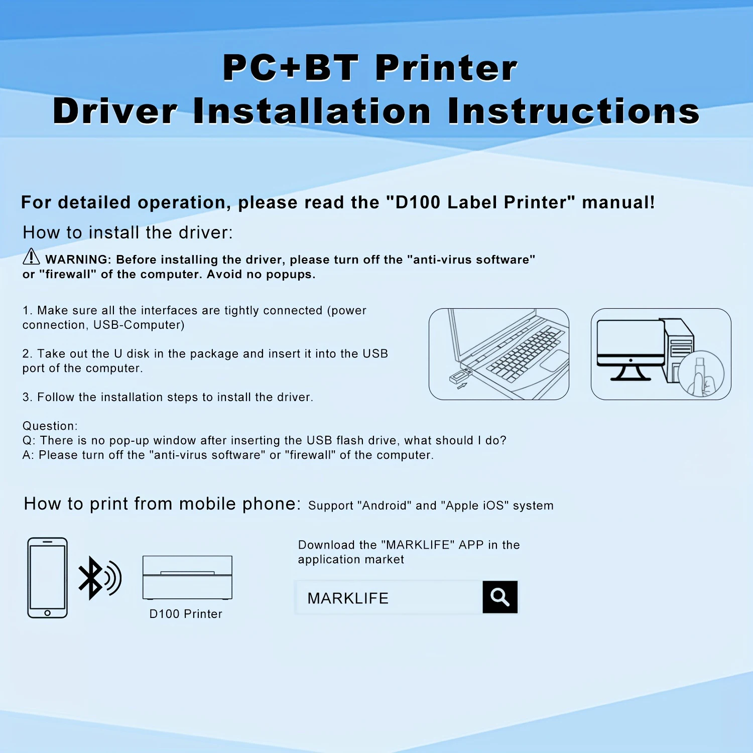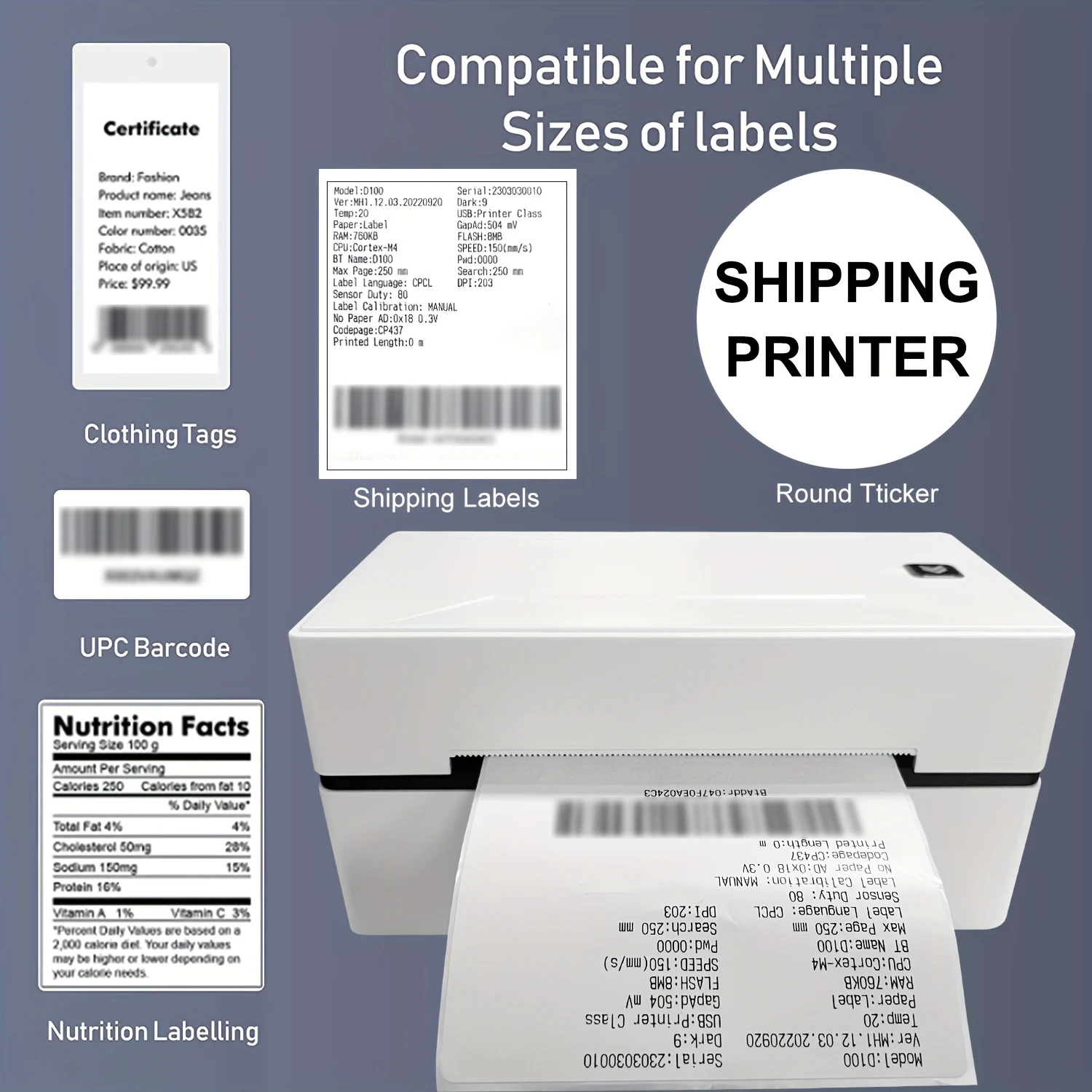 D100، طابعة ملصقات الحرارية متوافقة مع أجهزة الكمبيوتر والهواتف الذكية، ملصقات الشحن، ملصقات الباركود